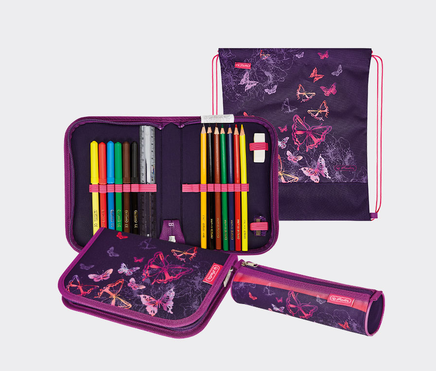 Minden minta tartalmaz egy töltött rendszerezős tolltartót, egy henger tolltartót és egy sportzsákot.