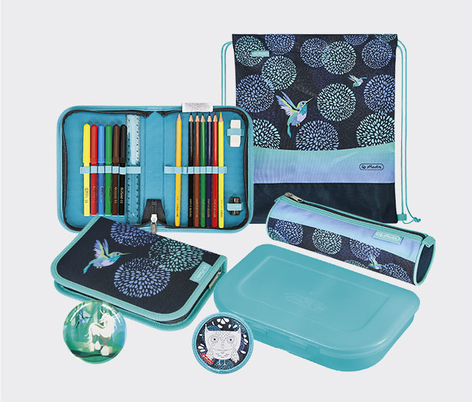 Minden minta tartalmaz egy 16 részes töltött rendszerezős tolltartót, egy henger tolltartót, egy sportzsákot és két cserélhető tépőzáras táskadíszt.