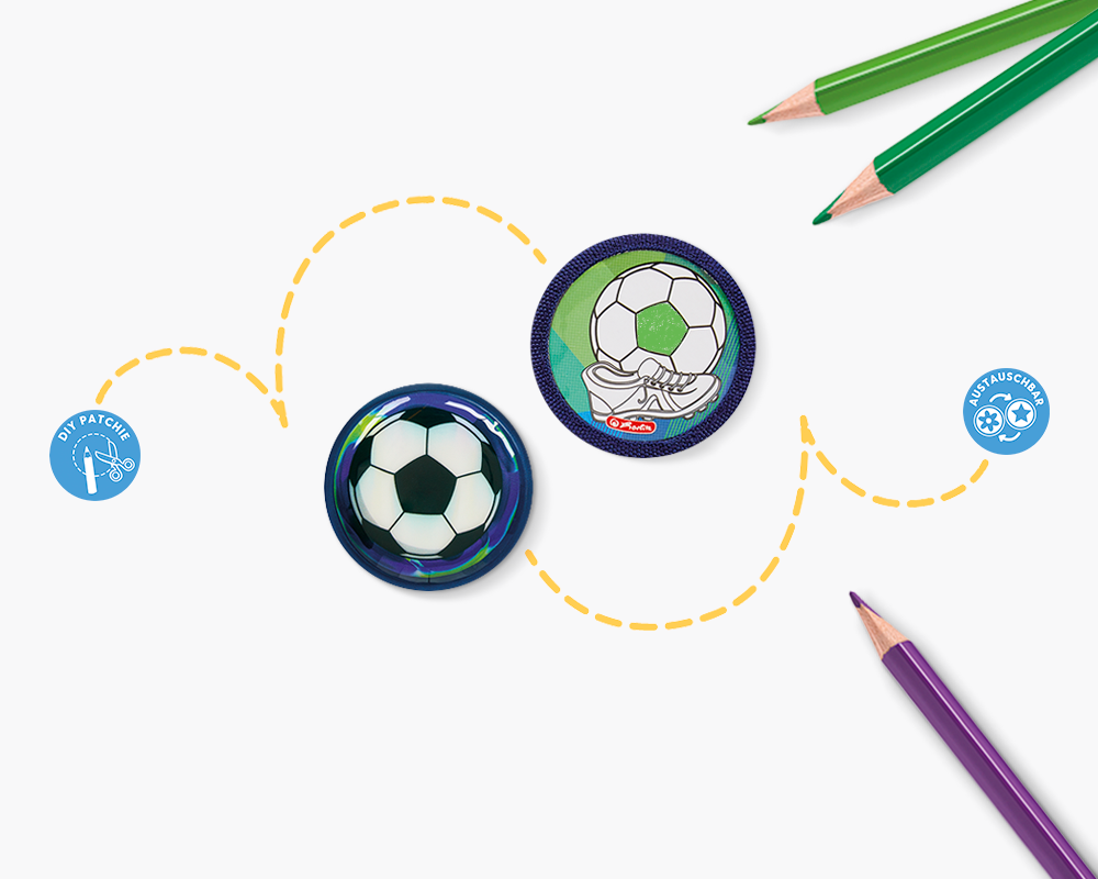 Wszystkie wzory zawierają piórnik z 16 elementami, okrągły piórnik, worek sportowy i 2 wymienne aplikacje na rzep.