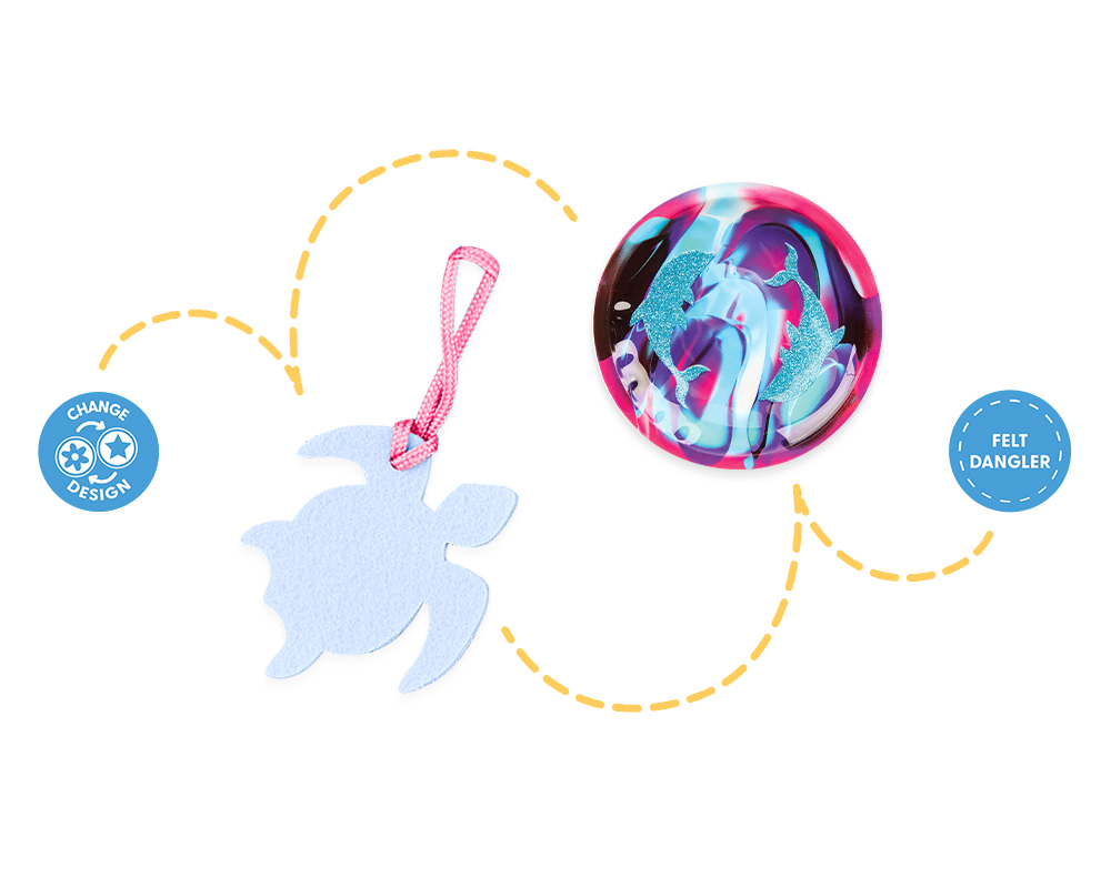 include un penar echipat cu 16 piese, un penar rotund tip etui, un sac pentru sport, o cutie de alimente, o aplicație interschimbabilă cu scai și un breloc atașat ghiozdanului cu "broască țestoasă".