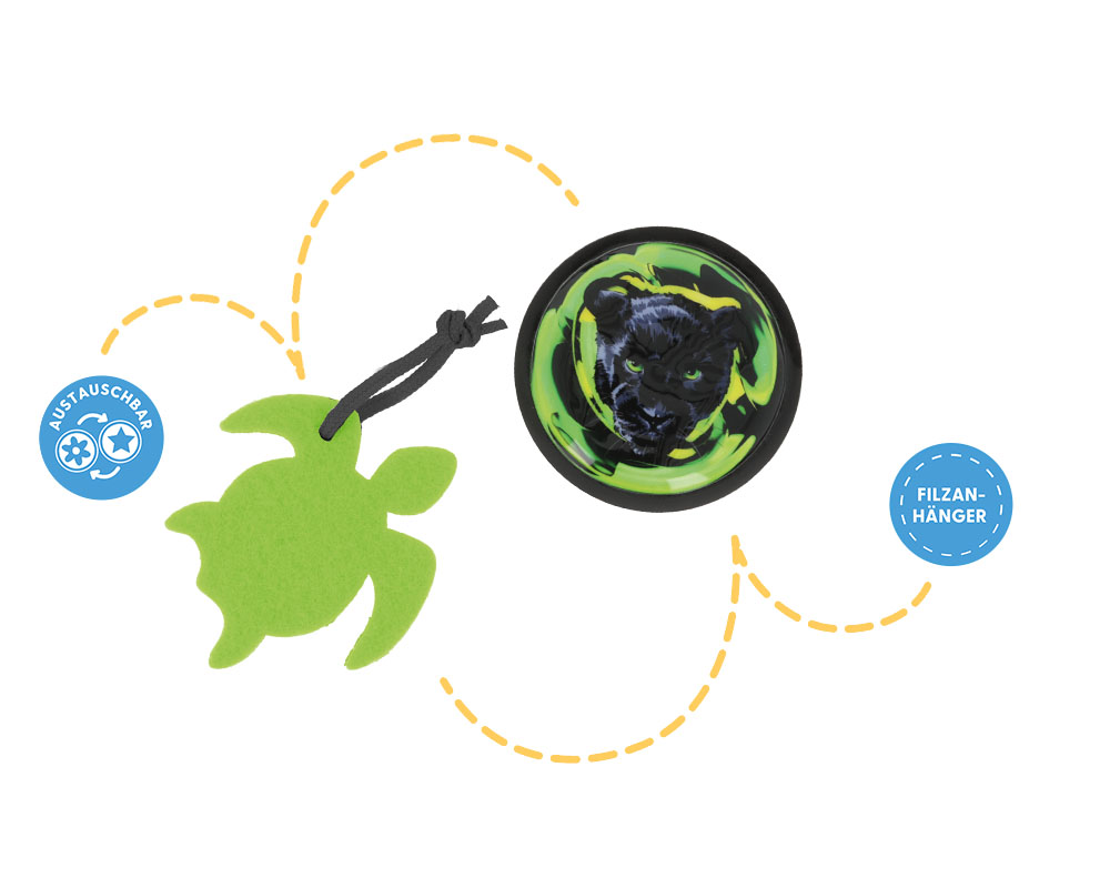 „Sicher sichtbar“ dank fluoreszierender und retroreflektierender Flächen an jeder Seite des Schulranzens.